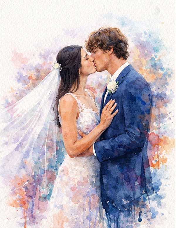 Durante el proceso creativo, el artista puede realizar ligeros cambios en color, trazo, fondo o ciertos detalles de la imagen con fines exclusivamente artísticos, con el objetivo de transformar tu foto en una obra acuarelada única, armoniosa y visualmente atractiva.